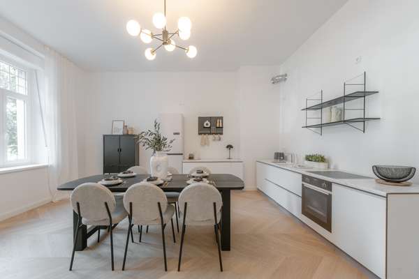 Wohnen oder investieren – luxuriöser Erstbezug nach Kernsanierung im Herzen Bayreuths Diese exklusive Altbauwohnung in Bestlage von Bayreuth vereint stilvollen Wohnkomfort mit nachhaltigem Werterhalt – ideal für Eigennutzer mit gehobenen Ansprüchen ebenso wie für Kapitalanleger mit Blick für Qualität und Lage. In einem charmanten Mehrfamilienhaus mit nur sechs Einheiten wurde die Wohnung im Jahr 2024 umfassend kernsaniert. Auf ca. 193 m² Wohnfläche eröffnet sich ein großzügiges Raumkonzept mit sechs hochwertig ausgestatteten Zimmern, beeindruckender Raumhöhe, französischem Fischgrätparkett und moderner Fußbodenheizung. Die Ausstattung lässt keine Wünsche offen: Das Masterbad verfügt über eine freistehende Badewanne, eine ebenerdige Dusche, Doppelwaschtisch, Fenster und separates WC. Ein zusätzliches Duschbad sowie ein Gäste-WC bieten hohen Wohnkomfort – ideal auch für Familien oder repräsentatives Wohnen. Das Master-Schlafzimmer ist durch eine angrenzende Ankleide perfekt ergänzt. Ein Abstellraum in der Wohnung, ein eigenes Kellerabteil sowie ein Kfz-Stellplatz im Sondereigentum runden das Angebot ab. Der Hausmeisterservice und die professionelle Hausverwaltung sorgen für eine reibungslose Betreuung – ob zur Eigennutzung oder zur Vermietung. Diese Wohnung ist bezugsfrei und eröffnet somit maximale Flexibilität – ob zur sofortigen Eigennutzung oder als langfristig werthaltige Kapitalanlage mit hochwertigem Vermietungspotenzial.