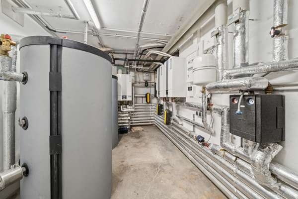 • Heizung (2021): Neuer Heizraum mit zwei Wärmepumpen sowie einer Gastherme mit Gastank für den Spitzenausgleich. Neues Heizleitungsnetz, moderne Funkzähler und Heizkostenverteiler.